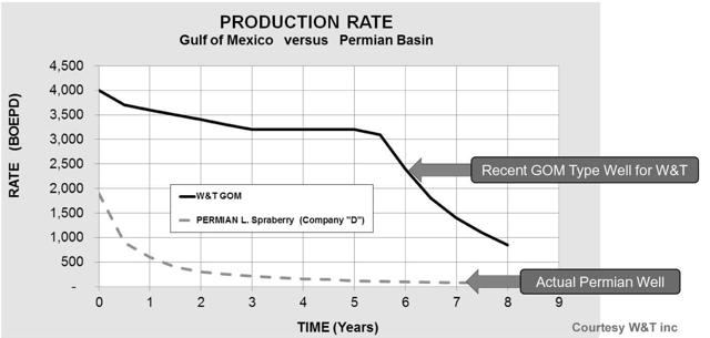 One explanation for this slow "reaction" from the oil operators is probably due to US shale. A large sustaining CapEx is necessitated to maintain and grow production in the shale due to the rapid depletion experience by a shale well, as illustrated by W&T Inc. (NYSE:WTI) in its last presentation and quarterly results that I covered recently.