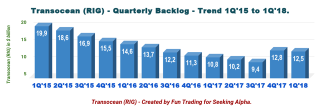 (Note: Do not pay attention to the last two quarters, because RIG acquired Songa Offshore and over $3 billion of backlog. Without this acquisition, the backlog would be below $9 billion by now.)