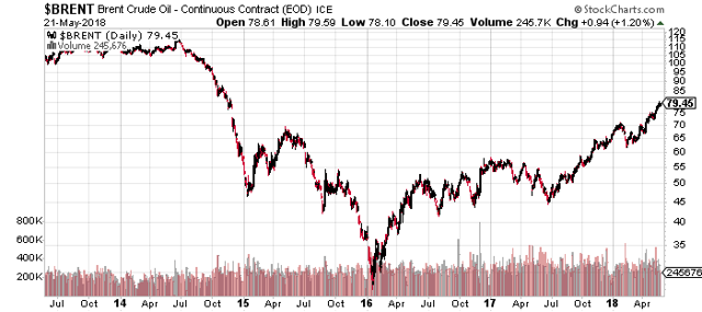 Nonetheless, oil prices are beginning to show significant momentum lately and are solidly trading above $70 per barrel, and now flirting with $80 a barrel - a rate not touched since November 2014.